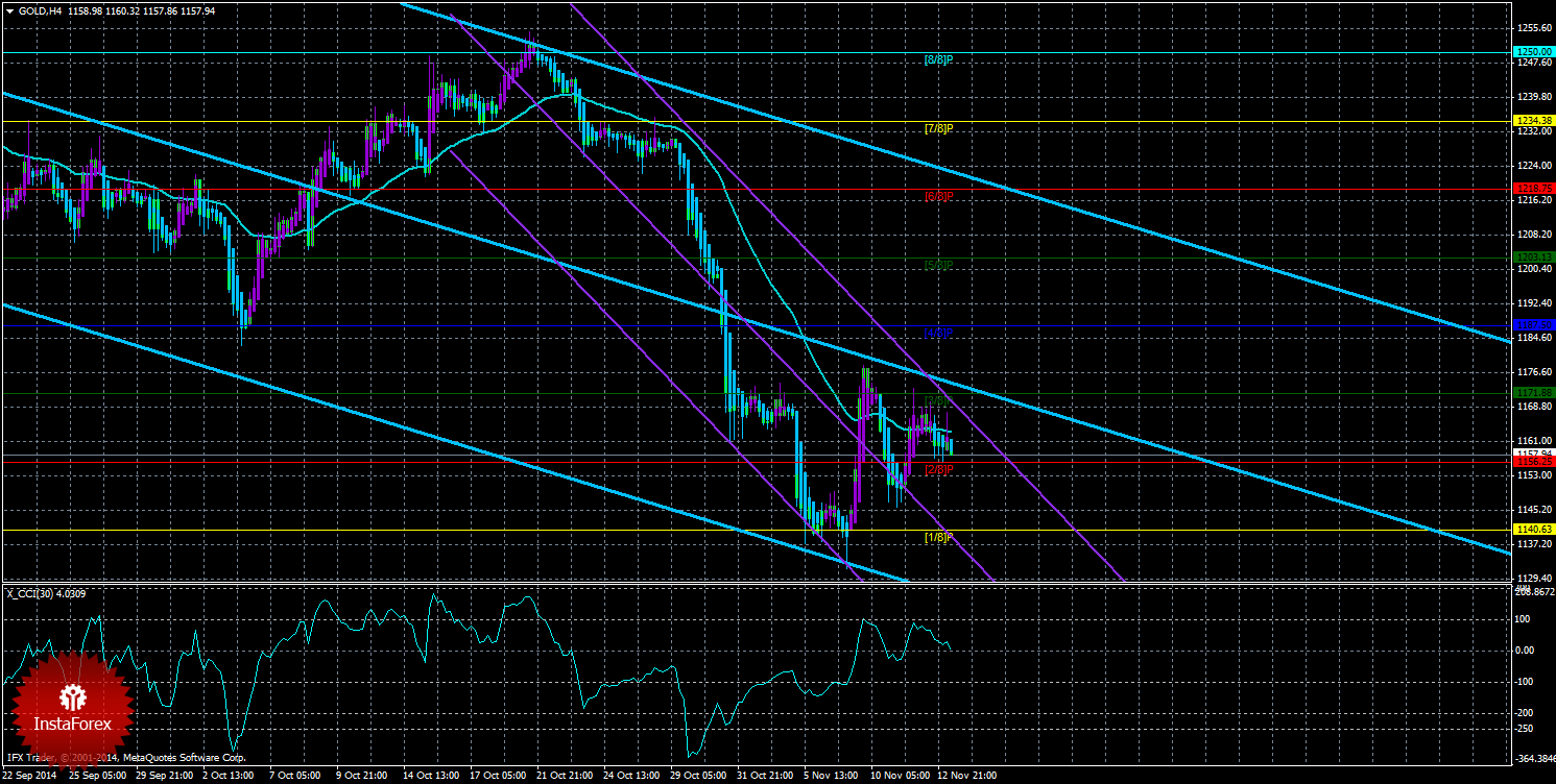 Техническая картина инструмента GOLD по системе «Каналы регрессии» за 11 ноября 2014 года