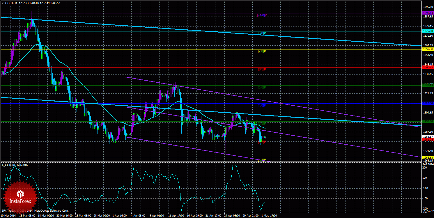 Техническая картина инструмента GOLD по системе «Каналы регрессии» за 28 апреля 2014 года