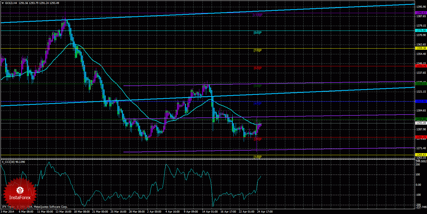 Техническая картина инструмента GOLD по системе «Каналы регрессии» за 25 апреля 2014 года