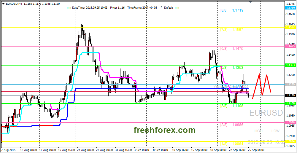 25 сентября 2015, EUR/USD. Есть предпосылки для дальнейшего движения цены в канале (3/8 - 5/8).