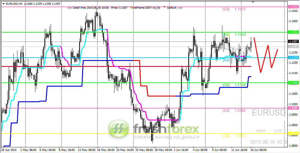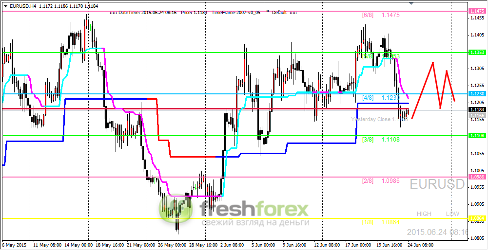 23 июня 2015, EUR/USD. По-прежнему ждем цену на уровне (4/8).