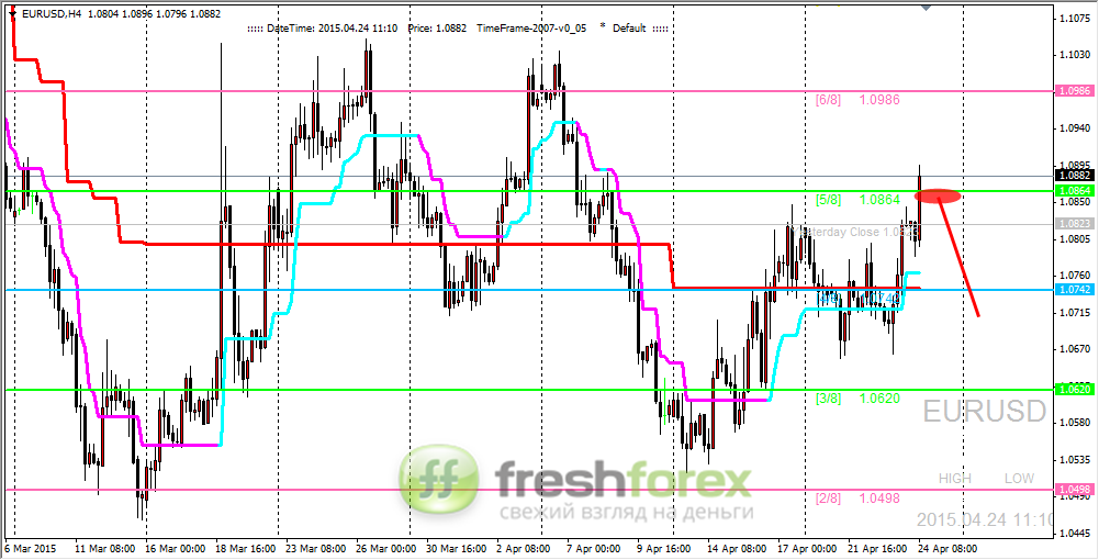 24 апреля 2015, EUR/USD. Попытка выбраться из горизонтального канала.