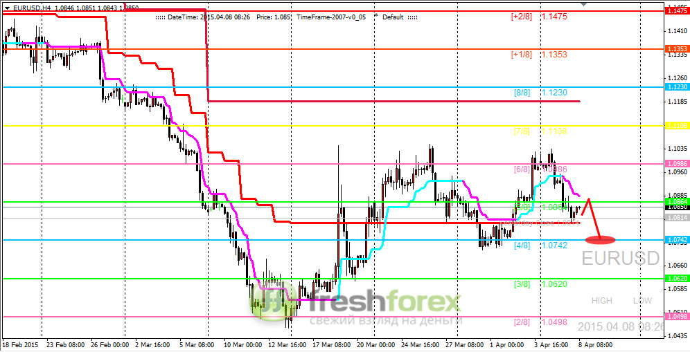 08 апреля 2015, EUR/USD. Ждем цену на уровне (4/8).