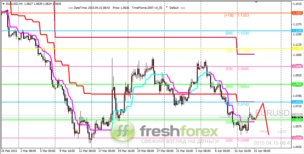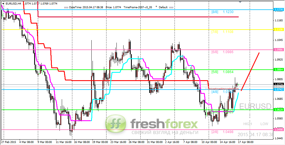 17 апреля 2015, EUR/USD. Пара пытается закрепиться выше отметки (4/8).