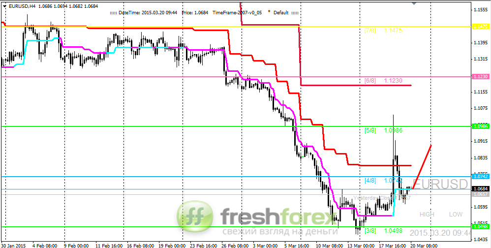 19 марта 2015, EUR/USD. Цена удерживается в рамках широкого канала (3/8 - 5/8).