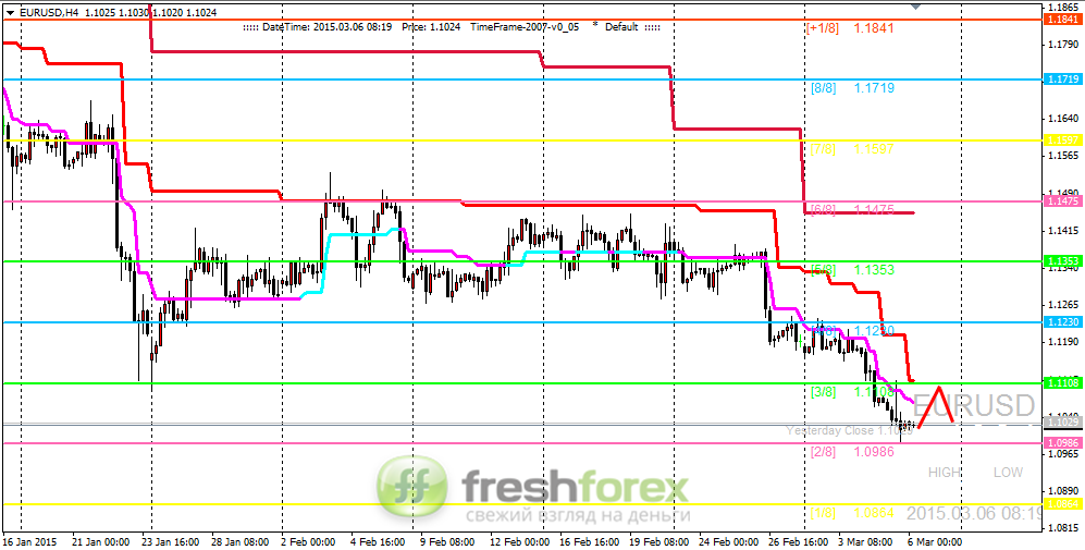 03 марта 2015, EUR/USD. Цена удерживается ниже уровня (4/8).