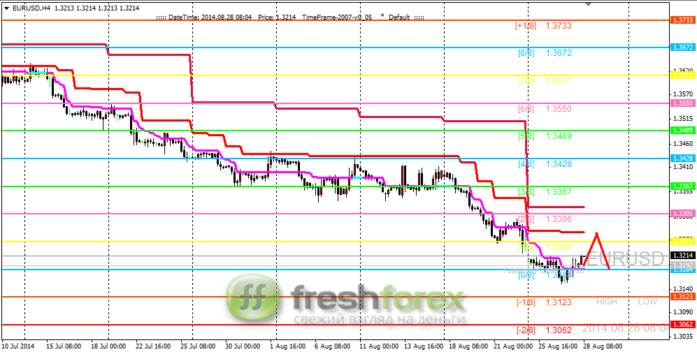 28 августа 2014, EUR/USD. Пытаемся закрепиться выше уровня (0/8).