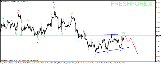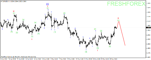 Таким образом в скором времени ожидается непродолжительный рост пары, который завершит весь зигзаг, а значит и коррекционную волну ii, после чего снижение пары возобновиться.
