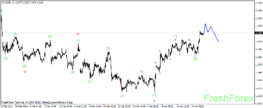 Быки снова отдали инициативу в медвежьи лапы. Возможно это обманный ход с их стороны. Пока сказать трудно. Возможно такое движение цены вызвано развитием клина. Если это так, то в ближайшее время нас ожидает очередной рост пары, в ходе которого сформируется волна 5, а заодно и вся модель. Две волновые модели говорящие о предстоящем сильном бычьем тренде очень впечатляют, но пойдет ли оно все так как предполагается? Вопрос остается открытым.