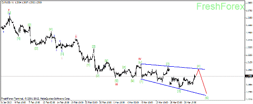25 марта 2013, EUR/USD. Конечный диагональный треугольник.