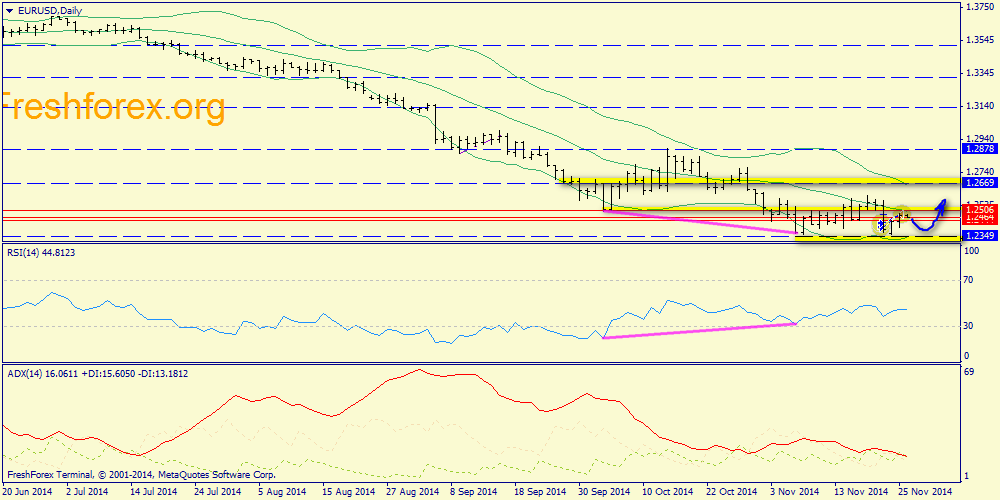 24 ноября 2014, EUR/USD. Ждем отскок из зоны 1.2325-1.2358.