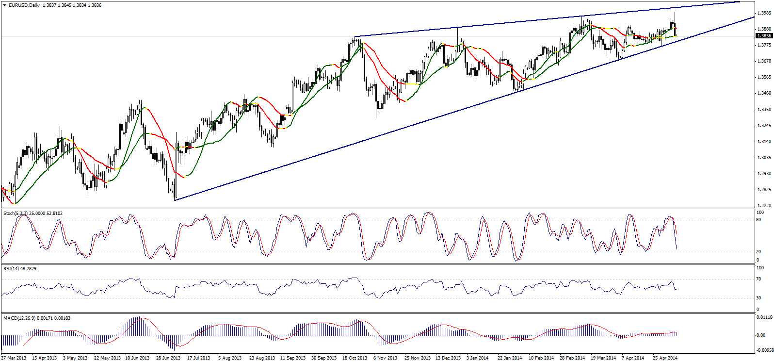 Золоту вновь не удалось закрепиться выше психологически важного уровня 1300,00, но по прежнему выше уровня 1285,00 и ключевого уровня поддержки 1277,00. Стабильность выше этих уровней заставляет нас игнорировать негативные показатели MACD и RSI, и придерживаться бычьего сценария.