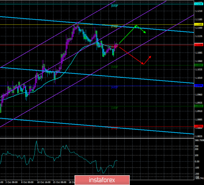 Обзор EUR/USD. 23 октября. Прогноз по системе «Каналы регрессии». Фундаментальный штиль продолжается.