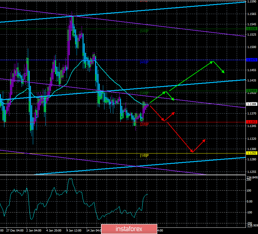 EUR/USD. 11 января. Торговая система «Каналы регрессии». Риторика Джерома Пауэлла осталась «голубиной».