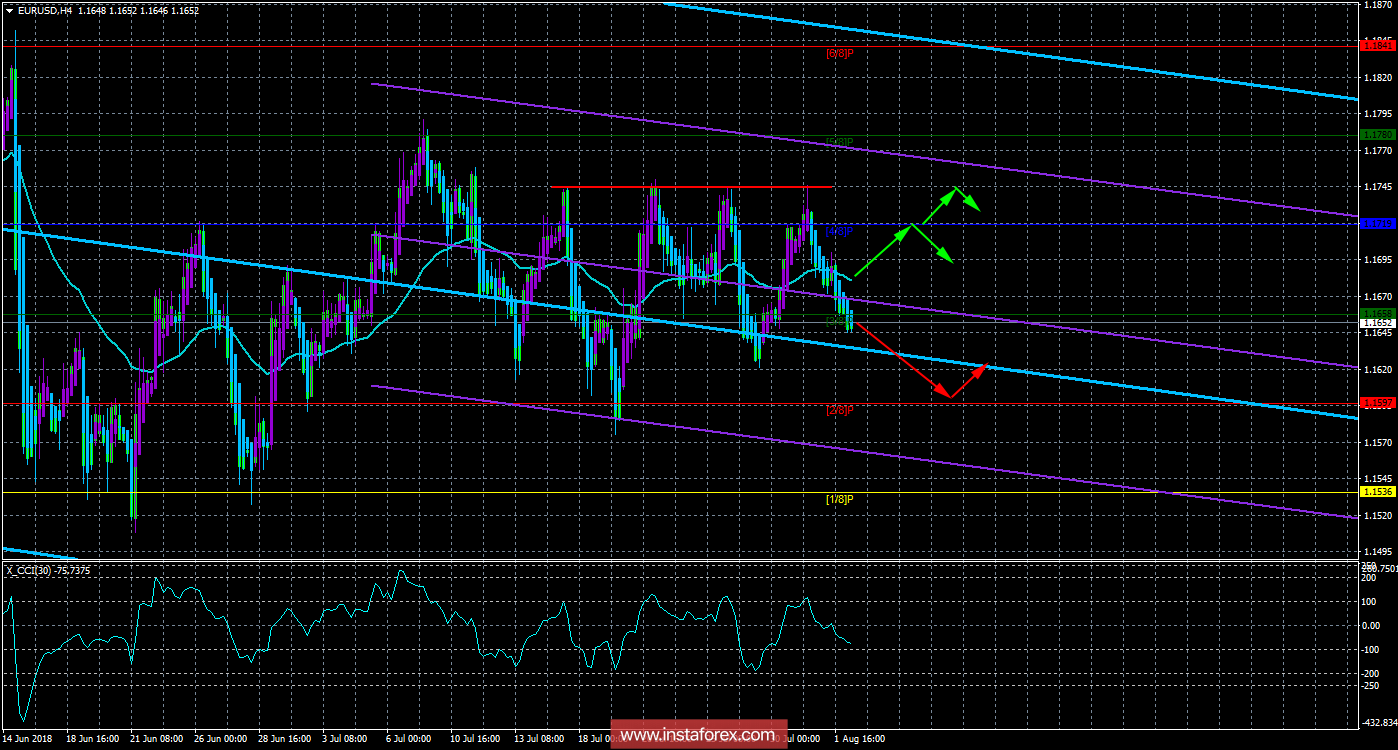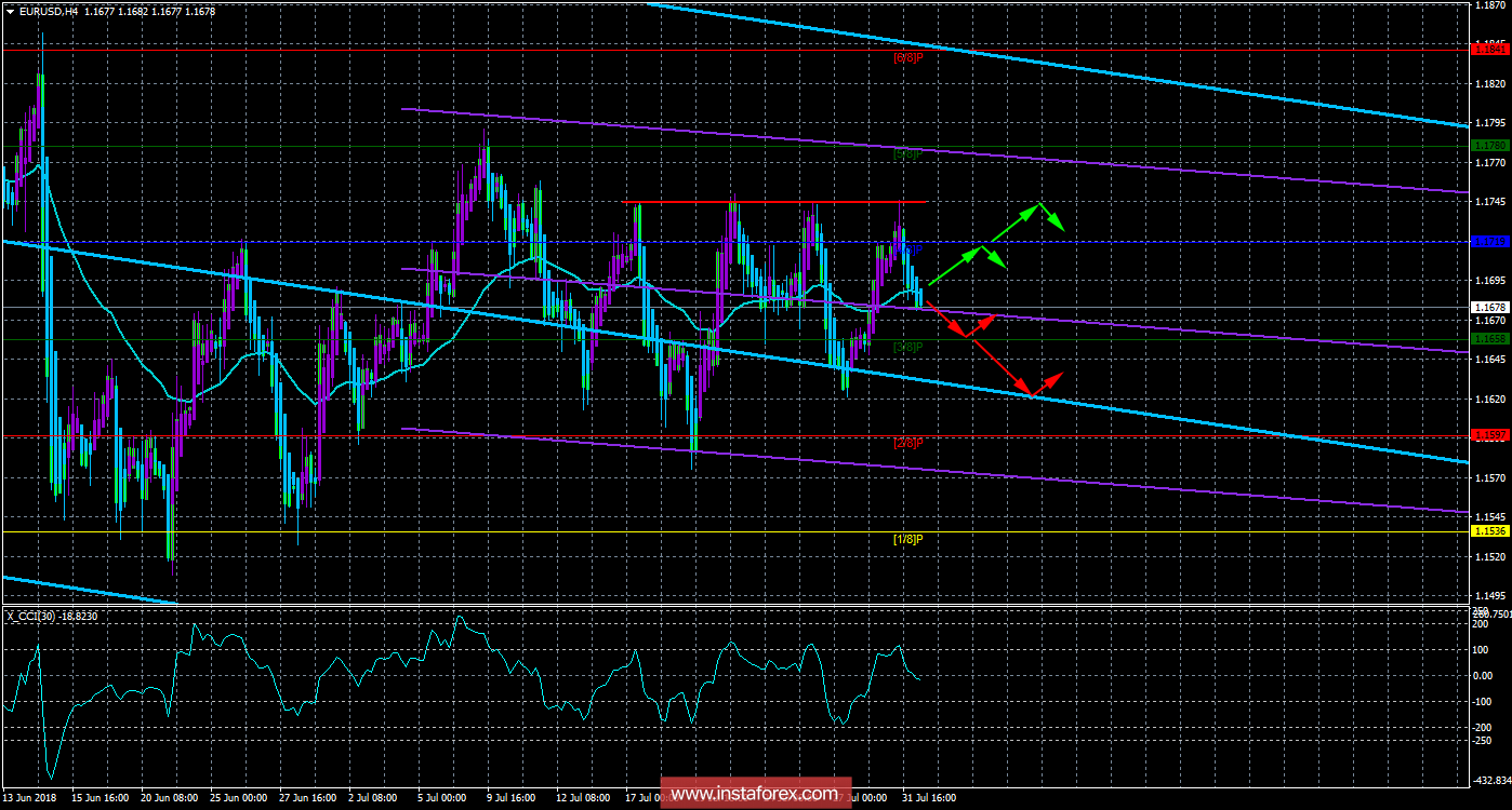 EUR/USD. 1 августа. Торговая система «Каналы регрессии». Что готовит нам Джером Пауэлл?