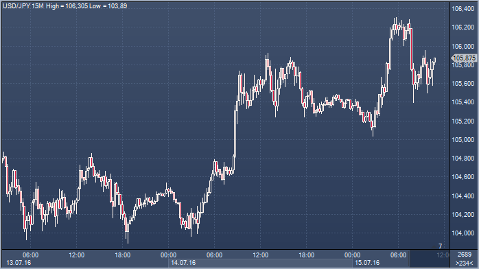 Курс иены продолжает снижаться к доллару в пятницу на фоне новых исторических максимумов американского рынка акций, усыпивших бдительность инвесторов и снизивших спрос на безопасные активы. Росту позитивных настроений на мировом финансовом рынке способствовали сильные данные по ВВП Китая. Рост ВВП Китая во втором квартале 2016 года в годовом выражении составил 6.7%, как и в первом квартале. По предварительным данным, рост ВВП Китая в первом полугодии 2016 года составил также 6.7%.