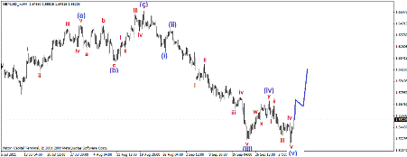 Цена медленно идет вниз. Но вскоре она думается ускориться, так как в ближайшее время ожидается развитие волны iii of (c), развивающегося зигзага.''