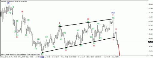 Сценарий с развитием КДТ в волне (с) полностью оправдывается. Цена как и предполагалось пошла вниз. В дальнейшеможидается продолжение снижения пары в импульсной форме.