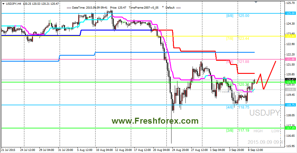 09 сентября 2015, USD/JPY. Пара подходит к первому уровню сопротивления.