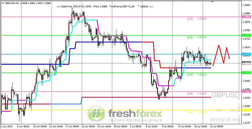 21 июля 2015, GBP/USD. Пара продолжает консолидироваться в канале (3/8 - 5/8).