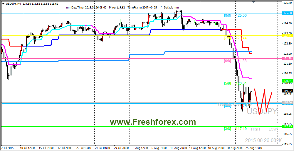 26 августа 2015, USD/JPY. Пара удерживается в канале.