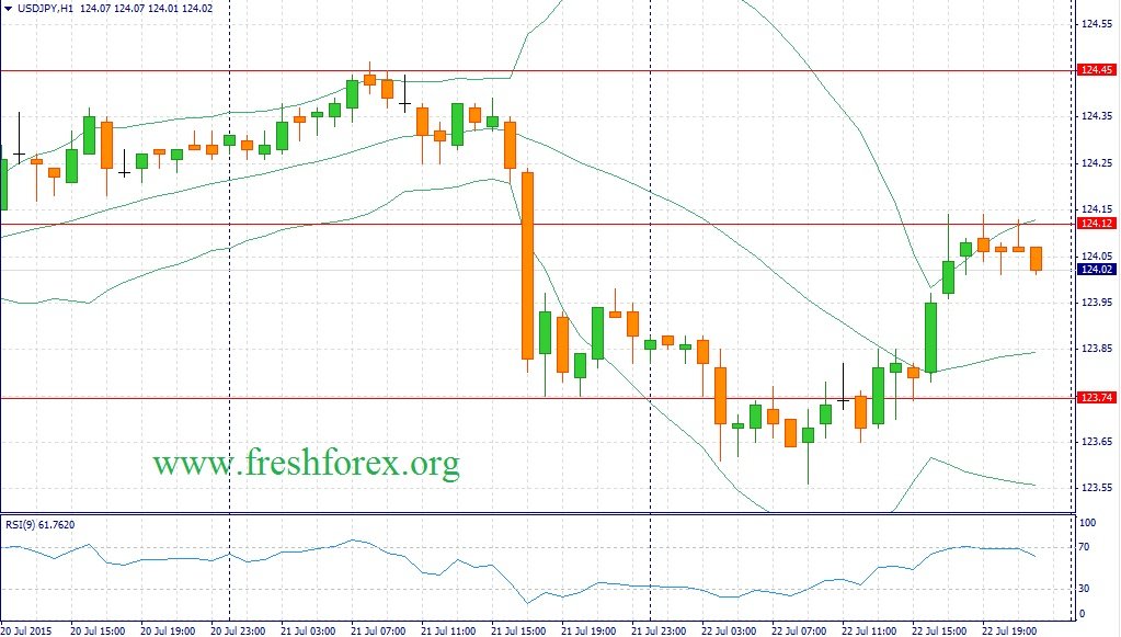 Таким образом, существенный прирост продаж жилья за последние два месяца позволяет рассчитывать на устойчивый экономический рост в Соединенных Штатах, что будет только усиливать ожиданий инвесторов на тему грядущего повышения ставок по федеральным фондам. На этом фоне в течение дня следует открывать позиции Buy на снижении котировок в область 123.85/123.50 и фиксировать прибыль на отметке 124.45. Необходимо выделить следующие уровни: уровни поддержки: уровни поддержки: 123.74 – 122.90 и уровни сопротивления: 124.12 – 124.45.