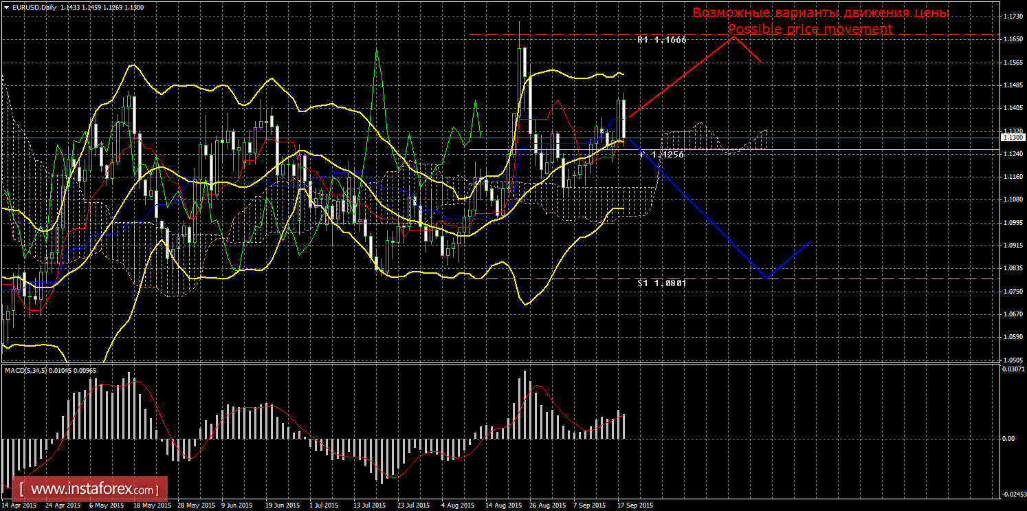 Евро на дневном таймфрейме продолжает коррекционное движение против «мертвого креста» и находится чуть ниже критической линии. Текущий сигнал на продажу не подтвержденный - Чинкоу Спан закрепился выше графика цены - и слабый, так как цена располагается выше облака Ишимоку. Первой целью для нисходящего движения сейчас является первый уровень поддержки 1,0801, но рассматривать короткие позиции можно будет только после закрепления цены ниже облака Ишимоку. Если первый таргет будет преодолен, то новой актуальной целью будет являться второй уровень поддержки 1,0391. Нисходящее движение будет актуальным до тех пор, пока цена находится ниже линии Киджун-сен (1,1360), если цена закрепится выше критической линии, дальнейшее нисходящее движение будет отменено, восходящее движение может продолжиться с целью первый уровень сопротивления 1,1666, а сигнал на покупку поставлен на грань отмены. Цена располагается между линиями Тенкан-сен и Киджун-сен, что свидетельствует о текущем коррекционном движении. Тенкан-сен направлен вверх, что говорит нам о восходящем движении в краткосрочном плане. Киджун-сен также направлен вверх, что свидетельствует о сохранении восходящего движения и в среднесрочной перспективе. Чинкоу Спан находится выше графика цены, что не является подтверждением текущего сигнала на продажу и означает "бычье" настроение трейдеров. Облако Ишимоку свидетельствует о восходящем движении, оно направлено вверх и расширяется, что свидетельствует об усилении восходящего импульса.