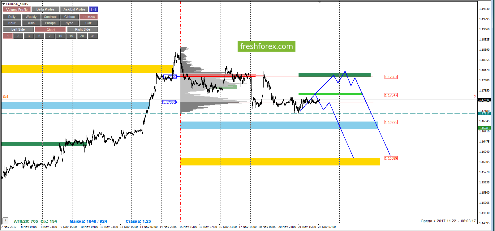 22 ноября 2017, EUR/USD. EURUSD: продавцы доминируют.