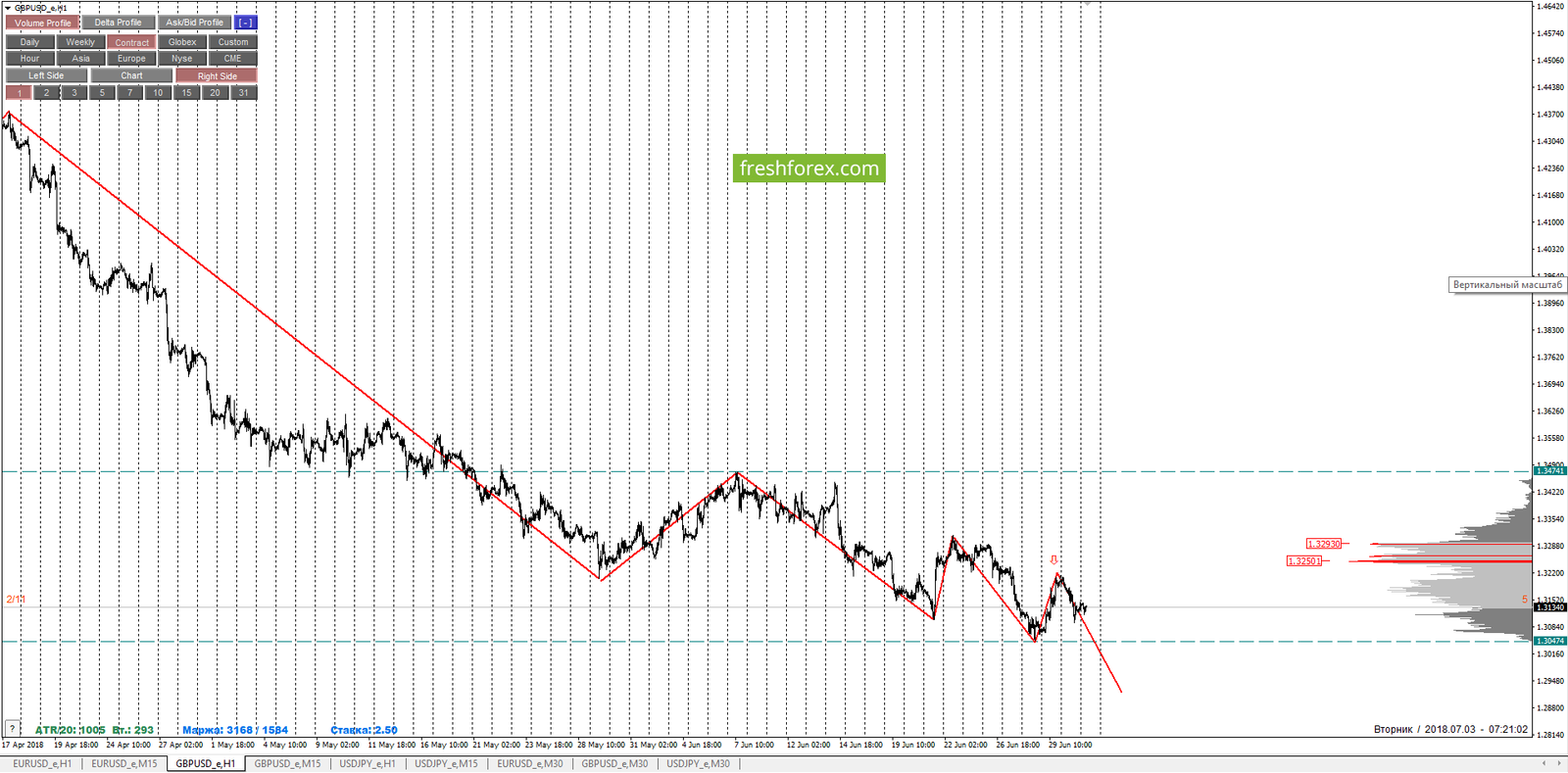 03 июля 2018, GBP/USD. GBPUSD: удержание ранее открытых продаж, усиление при повторном тестировании уровня DPOC.