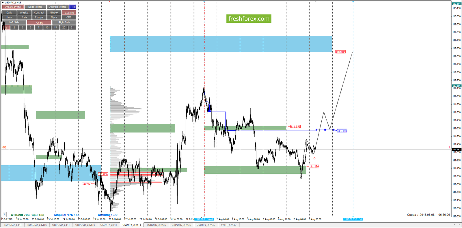 Buy: 111.154 – 111.598, Stop Loss- 110.99 (после пробития DPOC, искать более короткий стоп), Take Profit 1-112.156, Take Profit 2-112.584.