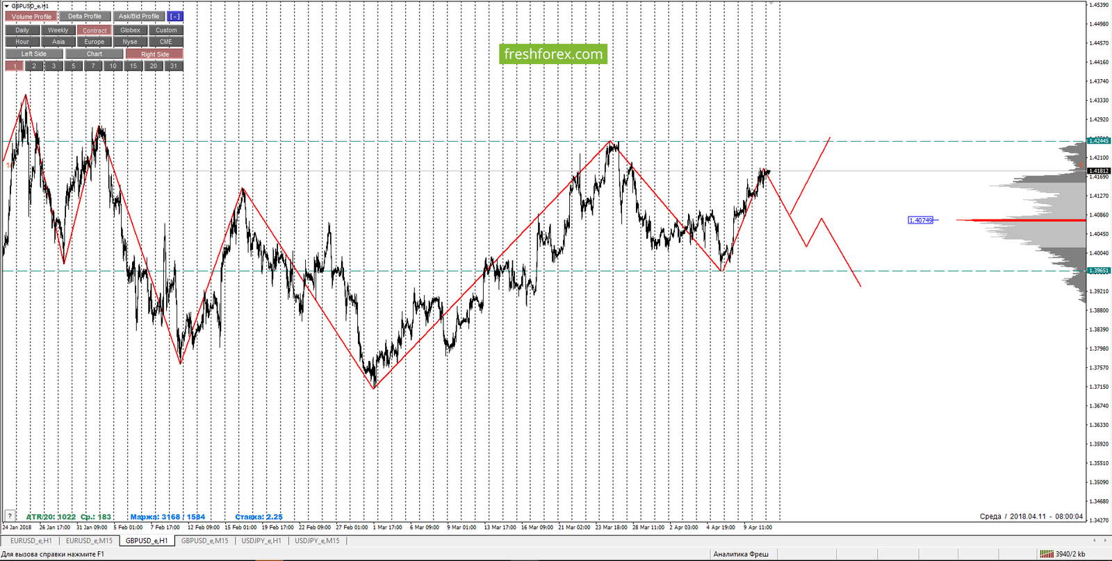 11 апреля 2018, GBP/USD. GBPUSD: осторожные покупки при ретесте зоны 1/4.