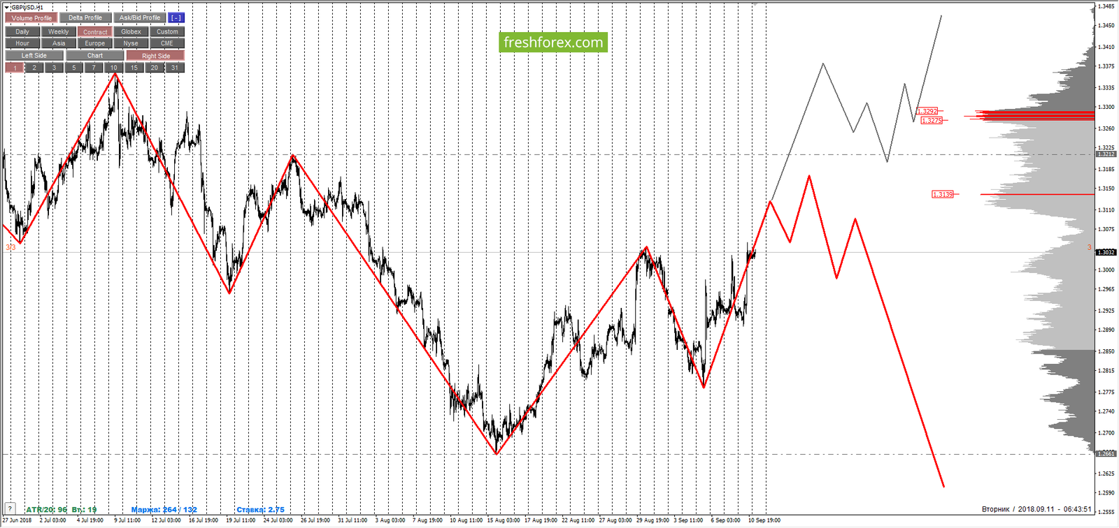 Внутридневные цели : обновление максимумов от 10.09.2018 (1.3050), среднесрочные цели: тест нижней границы ЗНКЗ – 1.3146.