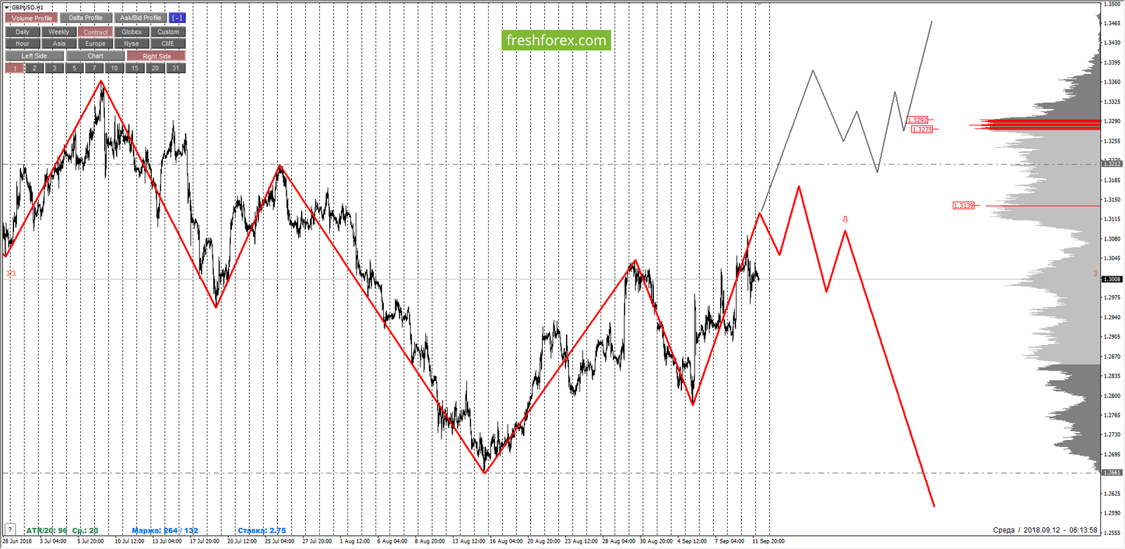 Внутридневные цели : обновление максимумов от 11.09.2018 (1.3086), среднесрочные цели: тест нижней границы ЗНКЗ – 1.3146.