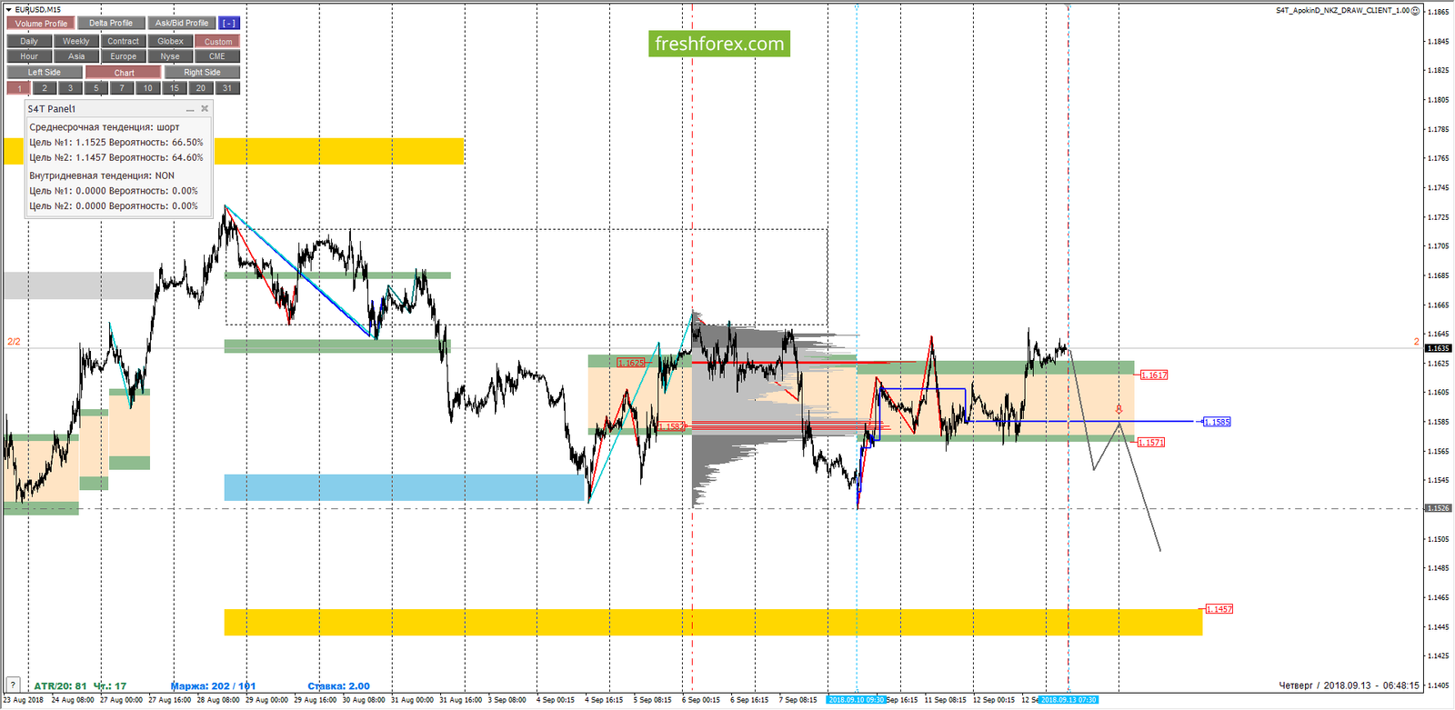 Внутридневные цели: обновление минимума от 10.09.2018 - 1.1526, среднесрочные цели: тест верхней границы ЗНКЗ – 1.1457.