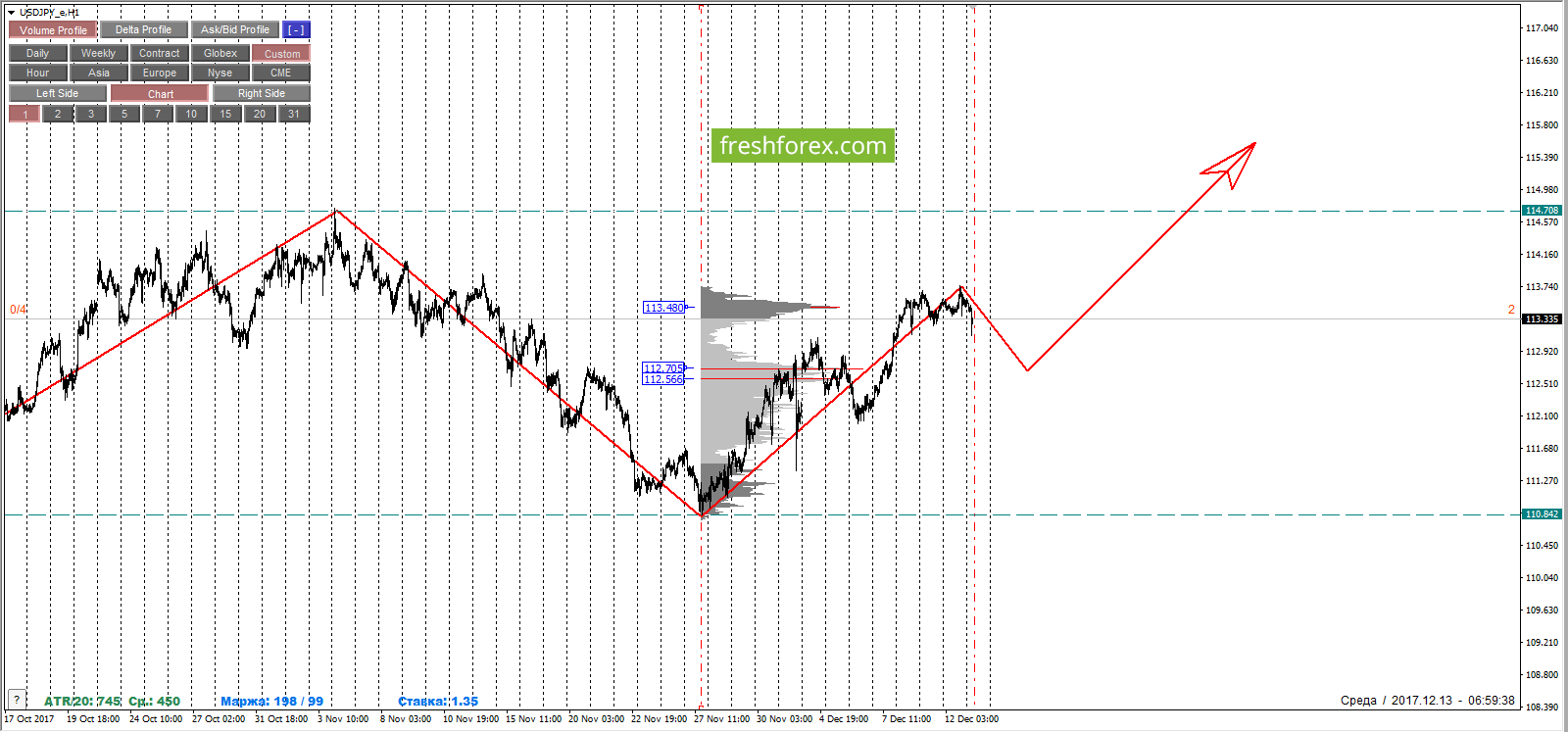 13 декабря 2017, USD/JPY. USDJPY: очень осторожные покупки.
