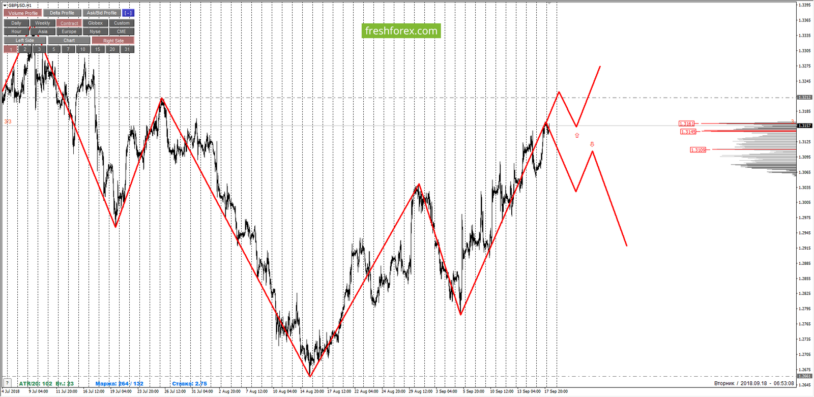 Внутридневные цели: обновление максимумов от 17.09.2018 (1.3164), среднесрочные цели: тест нижней границы СНКЗ – 1.3265.