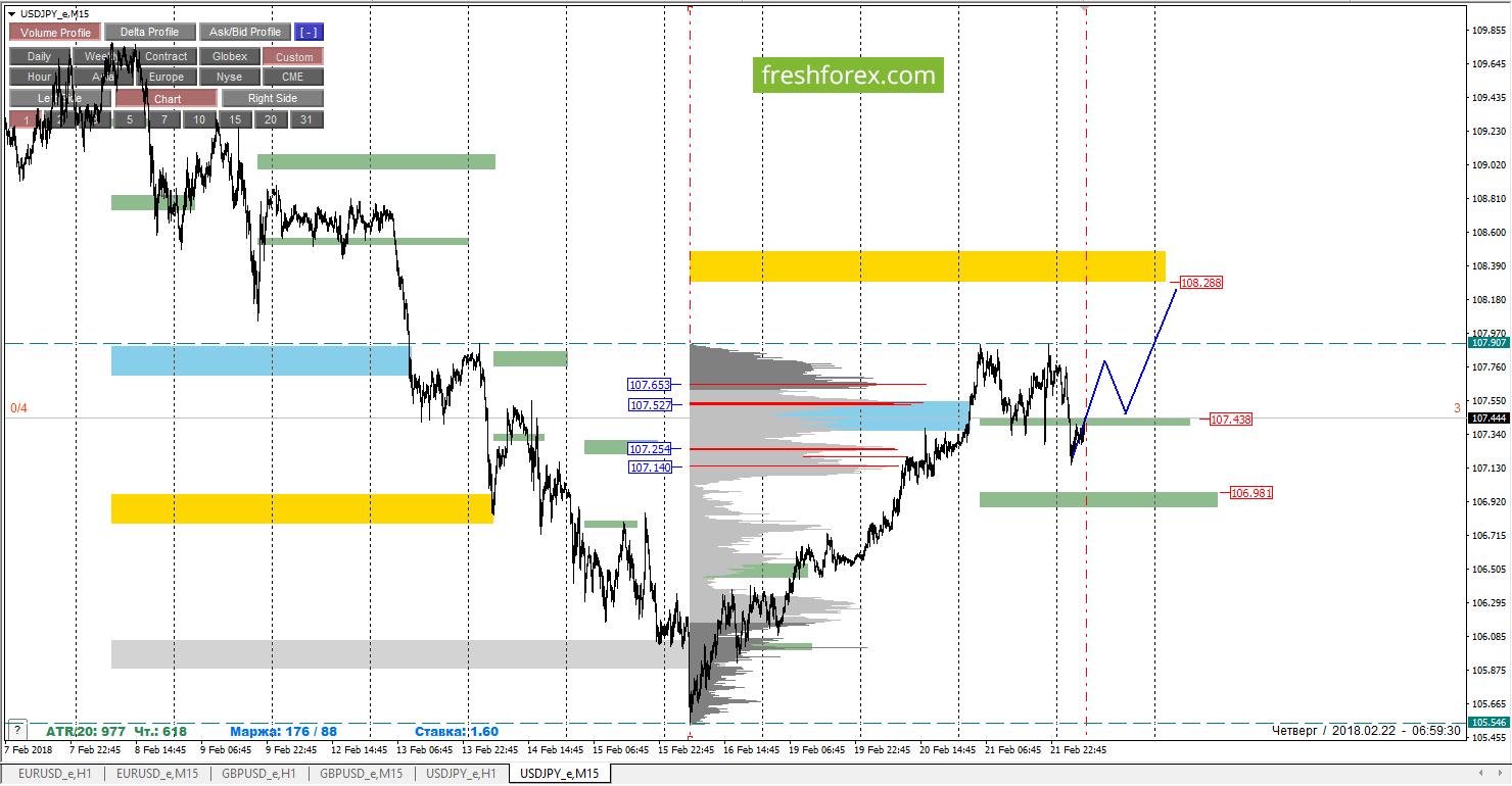 22 февраля 2018, USD/JPY. USDJPY: осторожные покупки, только после пробития зоны объемов!!!