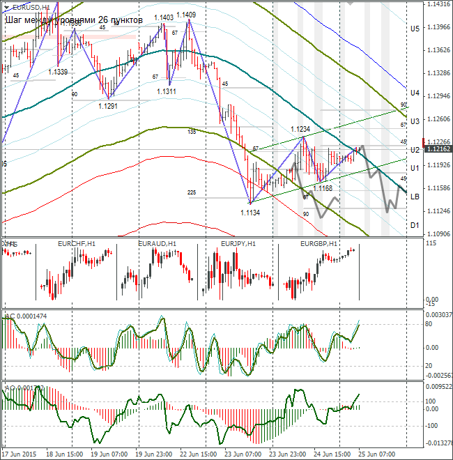 Переговоры по греческому долгу снова зашли в тупик. Часовые индикаторы за вчерашний день разгрузились. Теперь от линии lb можно двигаться на юг к 1,1130.