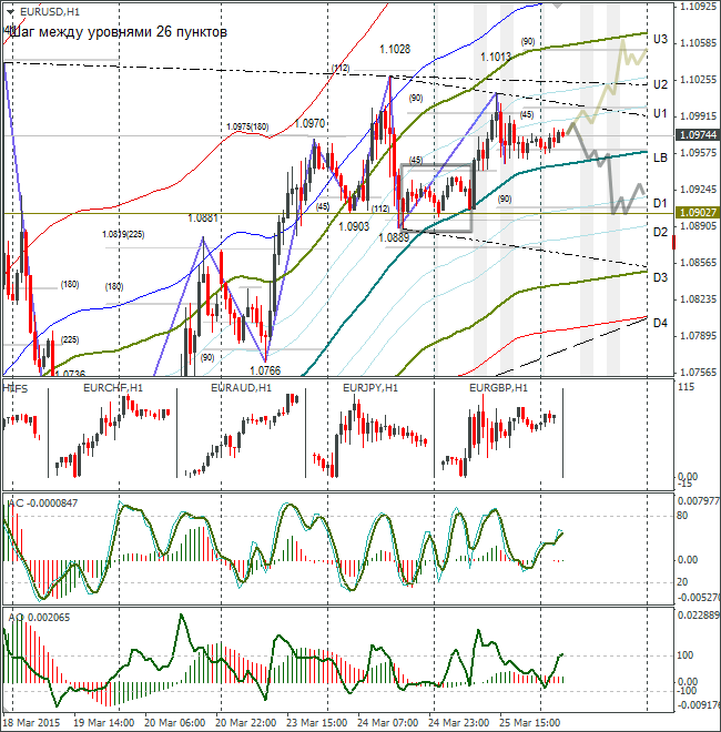 Пунктирными линиями я выделил ценовой канал. Границы канала на европейскую сессию – 1,0862 и 1,0999. Движение курса к уровню 1,0999 запустит сценарий на рост евро, падение к линии lb – сценарий на снижение.