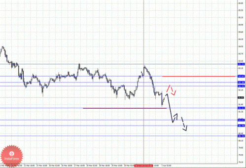 По паре Евро/Доллар восходящая структура от 29 марта пока остается актуальной для определения последующих целей. По паре Доллар/Франк ситуация осталась без изменения, и здесь мы не наблюдаем выраженных начальных условий для верха. По паре Фунт/Доллар продолжаем следить за восходящей тенденцией. По паре Доллар/Йена цена отменила развитие восходящей структуры, и здесь мы следим за формированием начальных условий для низа от 2 апреля. По парам Евро/Йена и Фунт/Йена следим за развитием нисходящей структуры от 2 апреля.