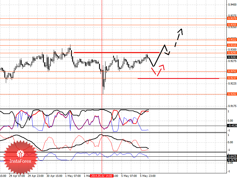 По паре Австралийский доллар/Доллар ключевыми уровнями в масштабе Н1 являются: 0.9370, 0.9355, 0.9322, 0.9310, 0.9293, 0.9252 0.9237 и 0.9202. Здесь, от 2 мая формируется потенциала для восходящего движения. Продолжения движения к верху, ожидаем после пробоя 0.9293, в данном случае цель – 0.9310, возле этого уровня консолидация цены. Проход ценой шумового диапазона 0.9310 – 0.9322 должен сопровождаться выраженным восходящим движением, здесь цель – 0.9355. Потенциальным значением для верха, считаем уровень 0.9370, по достижении которого, ожидаем консолидацию. Краткосрочное нисходящее движение, возможно в коридоре 0.9252 – 0.9237, пробой последнего значения приведет к отмене восходящей структуры, здесь цель – 0.9202.