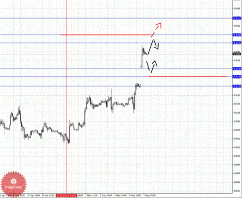 По паре Доллар/Канадский доллар ключевыми уровнями являются: 1.0044, 1.0010, 0.9993, 0.9942, 0.9930, 0.9914 и 0.9870. Здесь мы следим за развитием восходящего цикла от 27 апреля. Краткосрочное движение кверху ожидаем после пробоя 0.9993, в данном случае цель 1.0010, в этом коридоре консолидация цены. Пробой уровня 1.0010 позволит рассчитывать на движение к потенциальной цели – 1.0044. Корректировочное нисходящее движение возможно в коридоре 0.9942 – 0.9930, пробой последнего значения приведет к углубленной коррекции, в данном случае цель – 0.9914, от этого уровня высока вероятность разворота кверху, его пробой будет сопровождаться неустойчивым движением книзу. Уровень 0.9870 интересен с точки зрения среднесрочной перспективы.