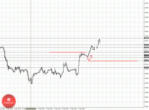 По паре Доллар/Франк ключевым уровня являются: 0.9269, 0.9234, 0.9220, 0.9167, 0.9149 и 0.9113. Здесь мы продолжаем следить за развитием восходящего цикла от 1 февраля. Продолжения движения кверху ожидаем после пробоя 0.9195, в данном случае цель 0.9220, в коридоре 0.9220 – 0.9234 консолидация цены. Пробой уровня 0.9234 позволит рассчитывать на движение к потенциальной цели – 0.9269, по достижении этого уровня ожидаем откат книзу. Краткосрочное нисходящее движение возможно в коридоре 0.9167 – 0.9149, отсюда высока вероятность разворота кверху, пробой уровня 0.9149 окажет негативное влияние на развитие восходящей структуры от 1 февраля, в данном случае потенциальная цель 0.9113.