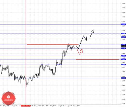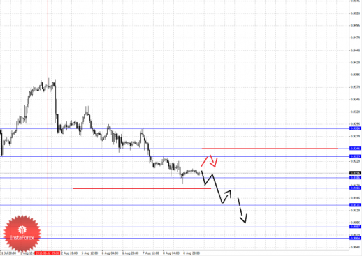 По паре Доллар/Канадский доллар ключевыми уровнями являются: 1.0572, 1.0520, 1.0496, 1.0456, 1.0437, 1.0397, 1.0372, 1.0357, 1.0301, 1.0270, 1.0217 и 1.0196. Здесь от 7 августа формируется потенциал для развития нисходящей тенденции, однако восходящая структура от 31 июля по-прежнему актуальна для определения целей. Продолжения движения книзу ожидаем после пробоя 1.0301, в данном случае цель 1.0270, в этом диапазоне консолидация цены. Пробой уровня 1.0270 должен сопровождаться выраженным восходящим движением, что приведет к отмене восходящей структуры от 31 июля, в данном случае цель 1.0217. Потенциальным значением для низа считаем уровень 1.0196, по достижении которого ожидаем консолидированное движение. Краткосрочное восходящее движение возможно в коридоре 1.0357–1.0372, пробой последнего значения приведет к углубленной коррекции, здесь цель 1.0397, этот уровень является ключевым сопротивлением для развития восходящей структуры, его пробой позволит рассчитывать на движение к первой цели – 1.0397.