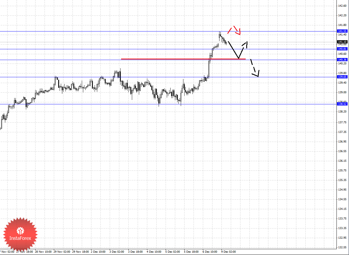 По паре Доллар/Франк ключевым уровня являются: 0.8989, 0.8966, 0.8956, 0.8942, 0.8914, 0.8884, 0.8868 и 0.8846. Здесь продолжения развития нисходящего цикла от 2 декабря ожидаем после пробоя 0.8914, в данном случае цель – 0.8884, в коридоре 0.8884 – 0.8868 консолидация цены. Потенциальным значением для низа считаем уровень 0.8846, по достижении которого ожидаем откат кверху. Краткосрочное восходящее движение возможно после пробоя 0.8942, в данном случае цель – 0.8956. Коридор 0.8956 – 0.8966 является ключевой поддержкой для нисходящей структуры, его проход ценой будет располагать к развитию восходящей тенденции, здесь потенциальная цель – 0.8989.