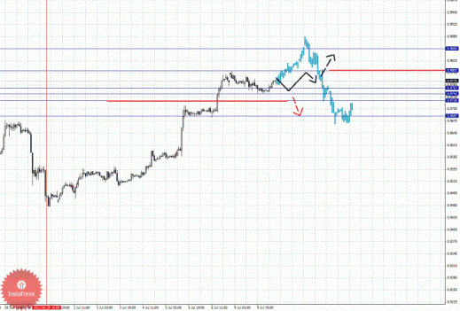 По паре Доллар/Канадский доллар ключевыми уровнями являются: 1.0314, 1.0283, 1.0269, 1.0235, 1.0209, 1.0170, 1.0158, 1.0140, 1.0104, 1.0082 и 1.0041. Здесь мы продолжаем следить за формированием восходящей структуры от 5 июля. Краткосрочное движение кверху ожидаем в коридоре 1.0209 – 1.0235, пробой последнего значения будет сопровождаться импульсивным движением к уровню 1.0269, в коридоре 1.0269 – 1.0283 консолидация цены. Потенциальным значением для верха считаем уровень 1.0314, по достижении которого ожидаем откат книзу. Краткосрочное нисходящее движение возможно в коридоре 1.0170 – 1.0158, пробой последнего значения приведет к углубленному движению, здесь цель 1.0140, пробой которого, в свою очередь, отменит развитие восходящей структуры от 5 июля и здесь первая цель – 1.0104.
