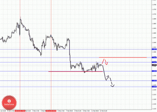 По паре Евро/Доллар важными уровнями являются: 1.3502, 1.3450, 1.3420, 1.3364, 1.3303 и 1.3265. Здесь мы продолжаем следить за развитием нисходящей структуры от 1 февраля. Продолжения движения книзу ожидаем после пробоя 1.3364, в данном случае цель 1.3303. Потенциальным значением для низа считаем уровень 1.3265, по достижении которого ожидаем консолидированное движение. Для более точных целей вы можете использовать локальную структуру от 6 февраля. Краткосрочное восходящее движение возможно в коридоре 1.3420 – 1.3450, пробой последнего значения приведет к развитию углубленной коррекции, в данном случае потенциальная цель 1.3502, до этого уровня ожидаем оформления начальных условий для восходящего цикла.