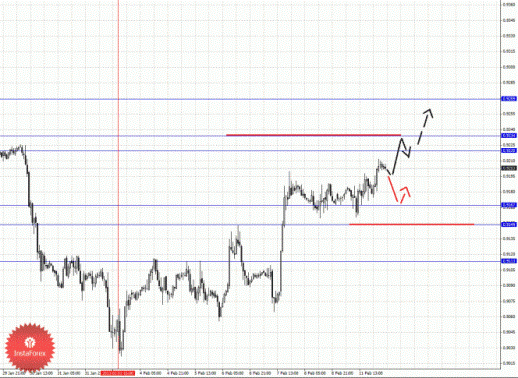 По паре Фунт/Иена ключевыми уровнями являются: 148.96, 148.16, 147.84, 146.85, 146.54, 146.10 и 145.21. Здесь мы следим за формированием локальной восходящей структурой от 8 февраля. Краткосрочное восходящее движение ожидаем в коридоре 147.84 – 148.16, пробой последнего значения позволит рассчитывать на движение к потенциальной цели – 148.96, до этого уровня мы ожидаем оформления более выраженной структуры для верха. Краткосрочное нисходящее движение возможно в коридоре 146.85 – 146.54, пробой последнего значения приведет к углубленному движению, здесь цель 146.10, от этого уровня мы ожидаем последний ключевой разворот кверху, его пробой приведет к отмене восходящей структуры от 8 февраля, в данном случае первая потенциальная цель – 145.21.