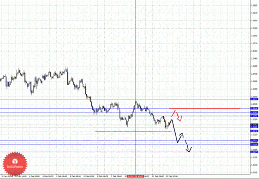 По паре Австралийский доллар/Доллар ключевыми уровнями являются: 1.0347, 1.0316, 1.0303, 1.0292, 1.0255, 1.0242, 1.0211, 1.0198 и 1.0174. Здесь цена отменила развитие восходящей структуры и на текущий момент мы следим за локальной нисходящей структурой от 8 февраля. Продолжения движения книзу ожидаем после прохода ценой шумового диапазона 1.0255 – 1.0242, в данном случае цель 1.0211, в коридоре 1.0211 – 1.0198 консолидация цены. Потенциальным значением для низа считаем уровень 1.0174, по достижении которого ожидаем откат кверху. Краткосрочное восходящее движение возможно в коридоре 1.0292 – 1.0303, пробой последнего значения приведет к углубленному движению, здесь цель 1.0316, от этого уровня высока вероятность разворота книзу, его пробой будет располагать к развитию восходящей структуры, в данном случае потенциальная цель – 1.0347.