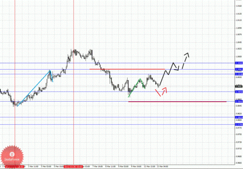 Уважаемые трейдеры, в своем аналитическом обзоре я рассматриваю развитие структуры на предстоящий день по таким валютным парам как EUR/USD, GBP/USD, USD/CHF, USD/JPY, AUD/USD, USD/CAD, EUR/JPY, GBP/JPY и EUR/USD. После прочтения данного материала, Вы должны наиболее четко и понятно представлять возможные перспективы развития валют. В данном методе анализа, для наиболее простого изложения своего подхода к рынку, я использую стандартные термины технического анализа, такие как уровни поддержки и сопротивления, однако сам метод основан на свойствах фрактальной функции и несет в себе глубокий смысл понимания развития текущей и будущей ситуации. Все свои расчеты я выполняю от начальных условий развития цикла. Черной стрелкой указано направление движение цены от текущих начальных условий. Красной стрелкой показано альтернативное движение, в случае пробоя ключевых уровней для отмены развития восходящего/нисходящего цикла. Пунктирными стрелками я указываю продолжение движения. Как правило, красной стрелкой я указываю корректировочное движение и краткосрочный выход за уровень. Убедительная просьба: не используйте только одни изображения, изучите текст, чтобы понять последовательность развития того или иного события. Также прошу учесть, что для более ясного понимания изложенного здесь материала необходимо ознакомиться с фрактальным анализом, так Вы сможете понимать то, что здесь написано, и как это можно использовать в своей торговой системе.